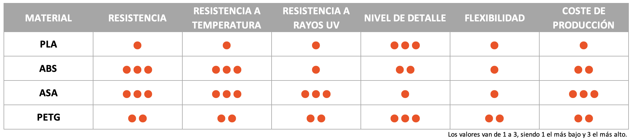 En Black Paprika Store disponemos de una amplia variedad de materiales y colores con el fin de ofrecer un servicio totalmente personalizado y que se adecúe a tus necesidades de impresión. Consulta la tabla comparativa para ver las diferentes propiedades de cada uno de los materiales que ofrecemos.